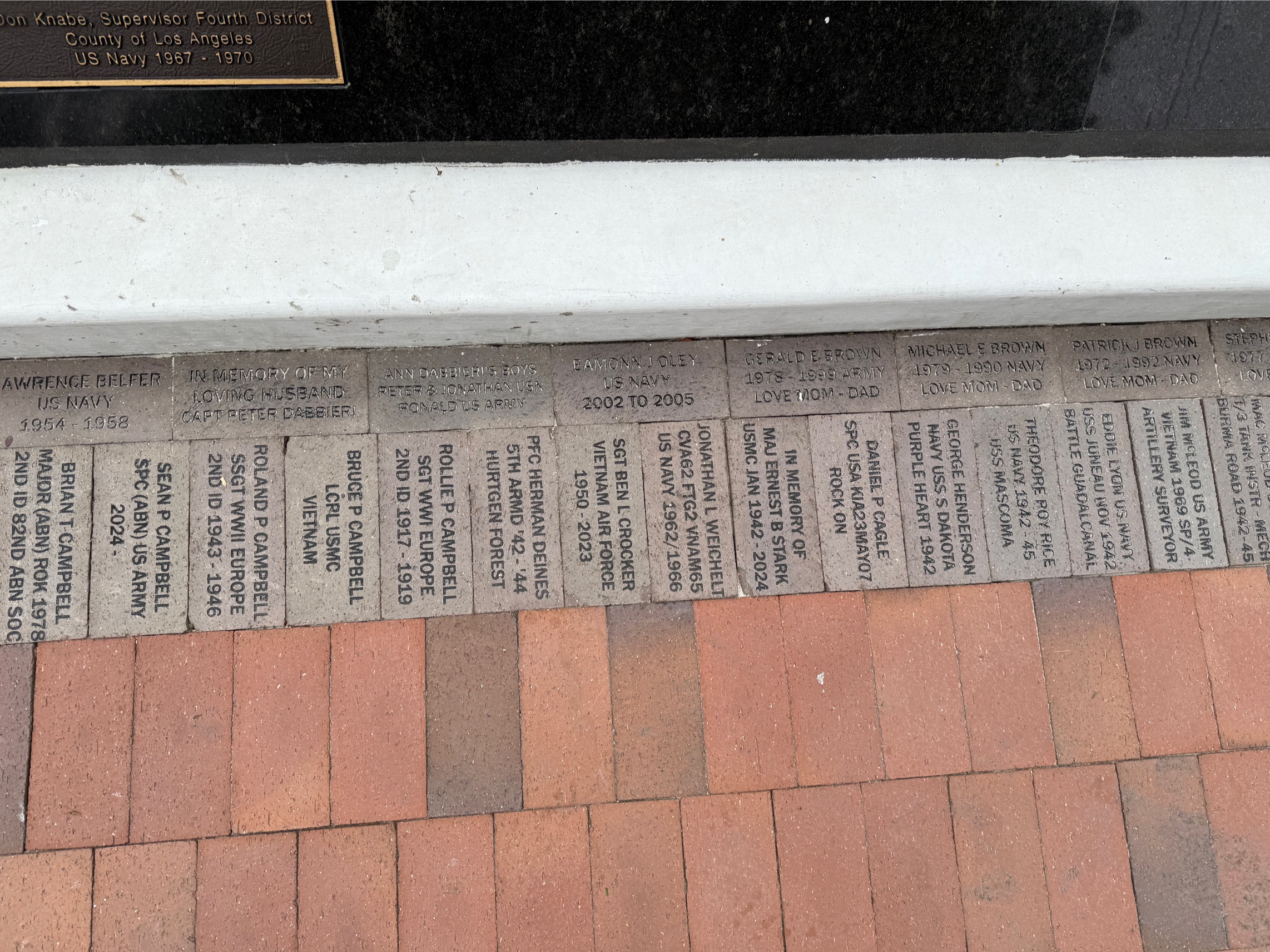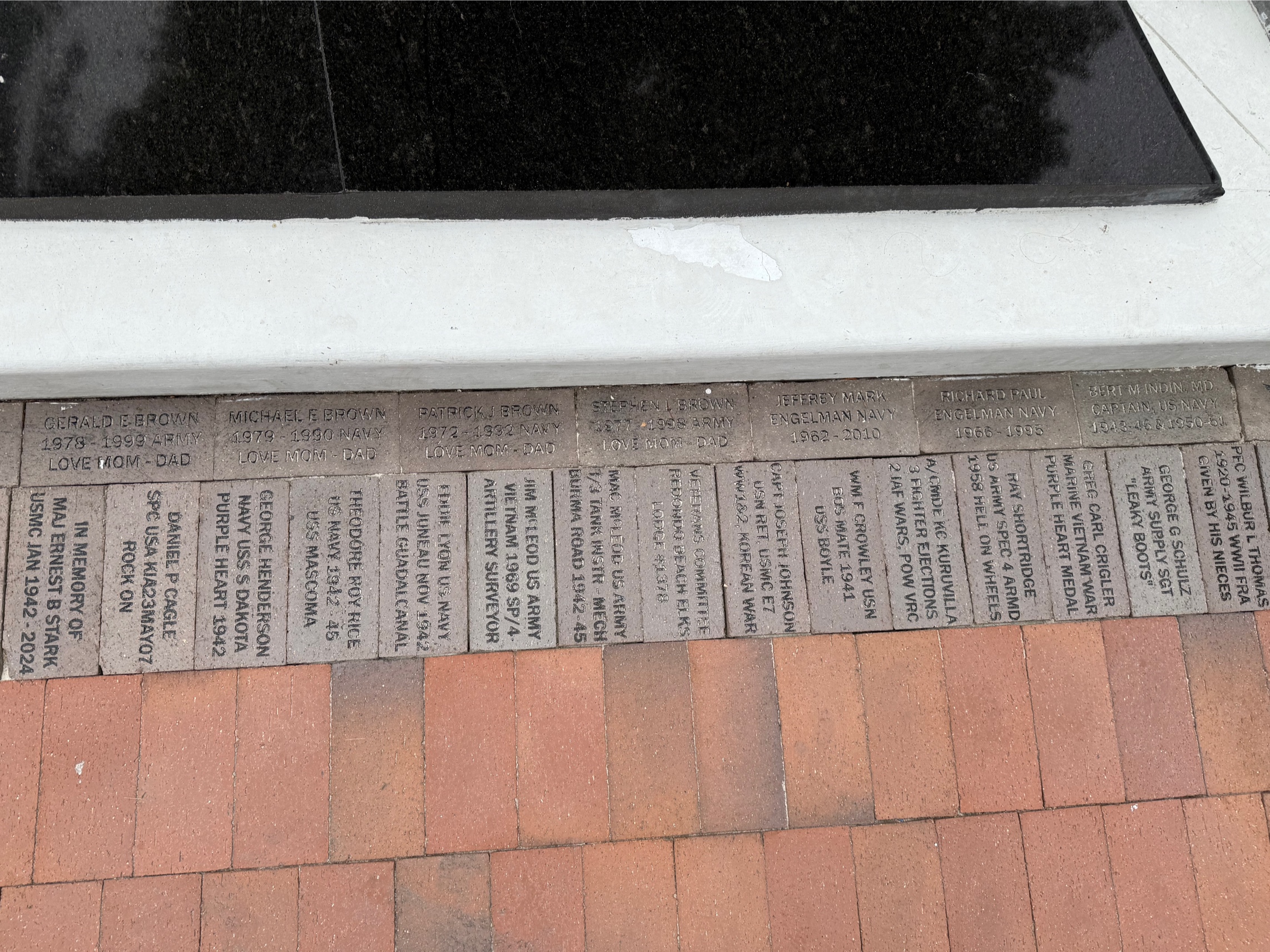 Thank you for honoring your loved one with a Memorial Brick at the Redondo Beach Veterans Memorial.